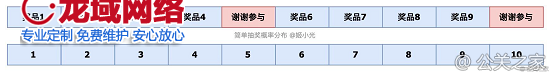 那么,如果不希望所有人都中怎们办?只需要中间的某个坑位当作“谢谢参与”即可。同样,此时“谢谢参与”的概率也是 1/10。你还可以把更多的坑位当成“谢谢参与”: